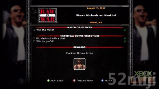 这次我们达成了游戏中鼓励的拿椅子砸 Mankind 条件就能解锁新的角色(得到了奖品 Mankind 一个...)