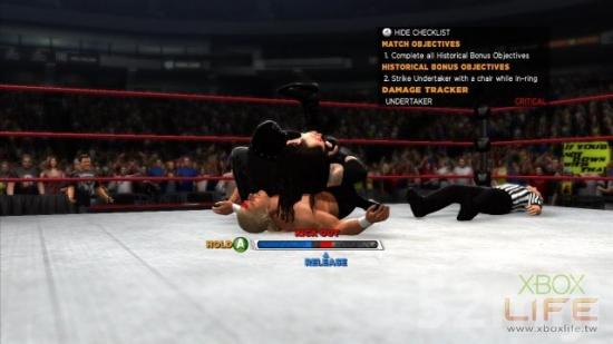 不是胡乱连按A键挣脱,是『按住』A键,到橘红色的地方放开,太早或超过就重来(你只有三秒的机会而已...以前游戏还分美版数的比较快日版数的比较慢~)