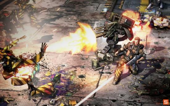 游戏中大量的爆炸场面何止是雄性荷尔蒙的弥漫,简直是泛滥成灾,最大的火力输出配以最小的大脑容量。不同特点的角色类型,威力强大的枪支弹药,无穷无尽的子弹倾泻,不停的射射射,爆爆爆,令人热血沸腾,似乎一切都是可以爆破的。