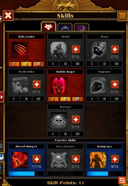 猎手系:第一个。顺劈+持续掉血。配合暗影中的 铁链啦怪。清怪一把手。红脸点满。身边怪越多攻击按%增加。防御也是。当你铁链吧怪聚拢。你发现你的攻击,防御都提升很多。绝对一个顺劈秒。被动的一个是暴击回血。可以点1级。还有个狂暴。杀死一个敌人% 获得各种加速。。建议点满吧。很NB