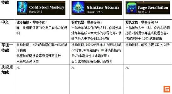 Cold steel mastery:满级好像是提高30%物理伤害,90%冰系伤害。后期可加。