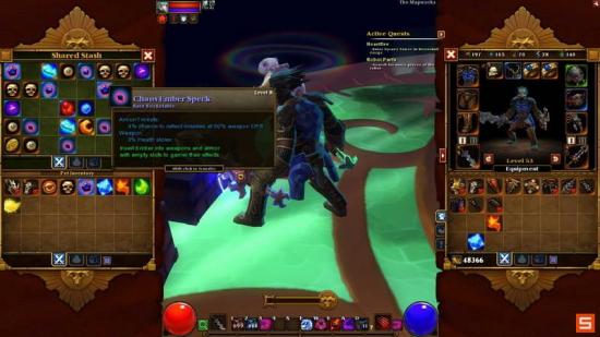 这里还要郑重贴出一张吧友 @噢妈依丶 提供的【武器可插百分比吸血石头】截图。有了这个重大的发现,50级之后完全可以farm百分比吸血石头来代替吸血套的作用。双武器插4个石头,能高于40%的吸血即可,如此的话,本build最重大的缺陷也将被修复,满级套装满级石头将成为本build也可追逐的终极物品。目前还没有人放出高等级同类型石头截图,不过我认为一定存在,【希望有高等级百分比吸血石头的朋友回帖show图】。