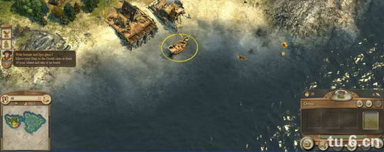 首先根据箭头点击自己的船只,听完对话后会提示你向上移动摄像机视角,移动到市场箭头标注这里,点击市场