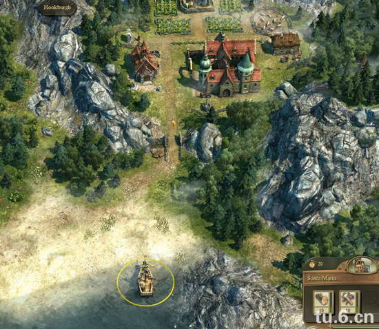 带上木材和工具在海边点击右下角闪亮图标,建立一个港口,把道路和港口连接上,把僧侣拖到你的船上,带到左边岛屿完成任务,过关