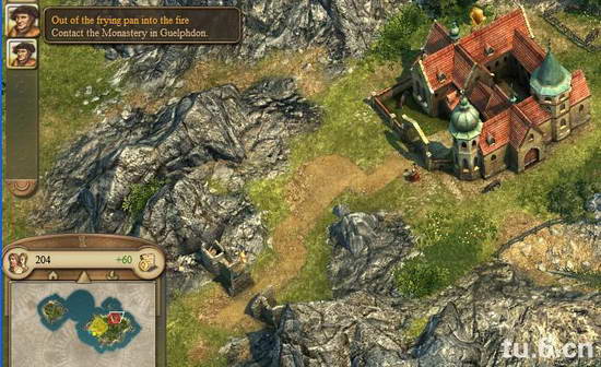 首先要你建一个修理起重机,并且与岛上寺院里的僧侣联系,他会要求你建一条道路连接起来你的村庄