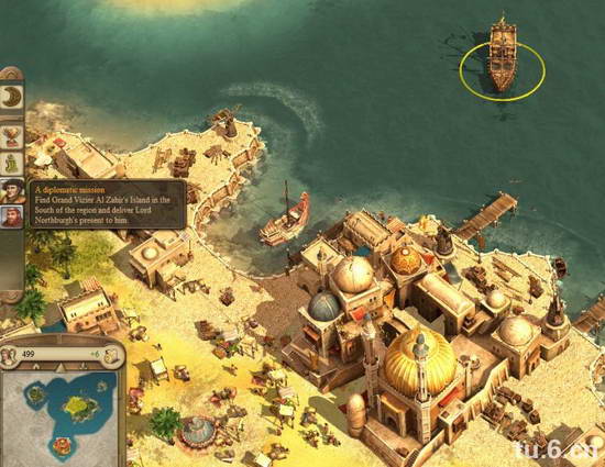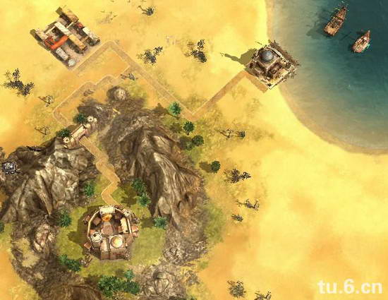接着在来到西部地区在西部岛屿上建立港口仓库,用刚才营救的东方小船在这个沙漠岛屿上建造东方建筑物,并与岛上的任务地点建立好道路连接,在这里至少要发展145人口的牧民,最好建立一条贸易路线,往这里运送物资,
