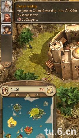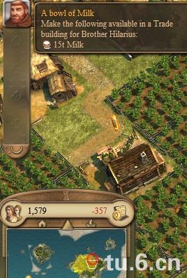 你还需要在自己的本岛建立一个武器铺,还需要建立一个面包房,交付僧侣10个面包和15个牛奶发展你西部的岛屿,达到295牧民开启地毯制造厂,制造3个地毯运送到中南部交任务,交付完地毯后你获得一艘战舰