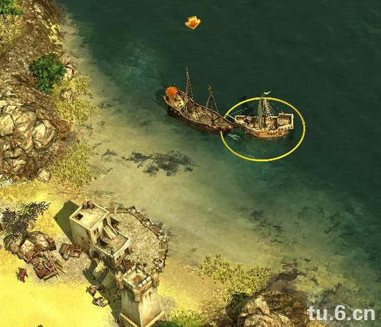 还有一个任务是要你去左下角西南方找到隐藏的海盗船