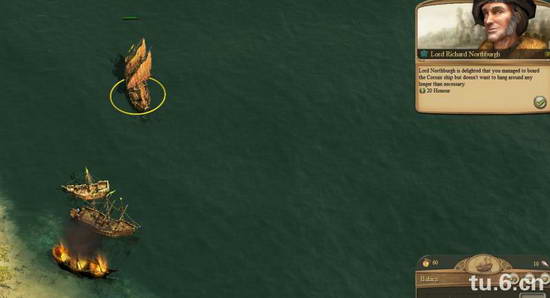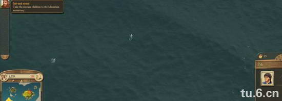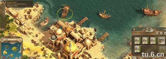 然后叫你生产两艘小战舰,来到南方位于7点方向的岛屿击毁敌人,把孩子送回僧侣处过关