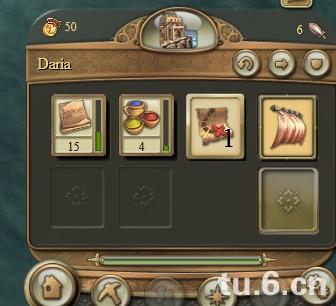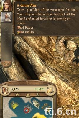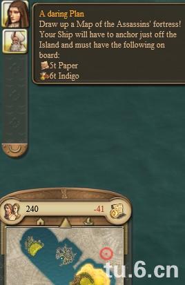 这两个任务都需要纸和染料,先建造吧,纸可以再下面的岛屿买到,要想建造染料必须先到西北的那个11点小岛去买授权许可,花费50点荣誉购买一个绿色的卷轴,送给你下面那个岛屿,就可以建造了
