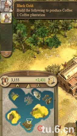 接着来到任务提示点,左边的岛屿交任务,你获得了一个蓝色卷轴许可证,把蓝色卷轴带到下面的岛屿获得建筑许可(和自己第一次买的那个同样模式)此时右下角的一个岛屿又提供给玩家建造了,这里可以种植咖啡了