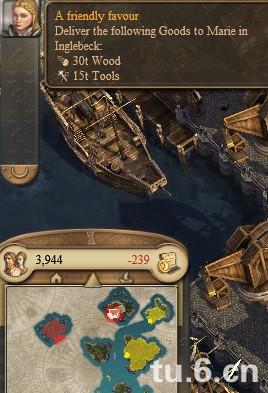 初始岛西北部的岛屿要你运送30个木头和15个工具给她,送完后还要你继续运送20个鱼和40个棉麻衣服给她,送到后她城市里面有间谍把间谍抓住后她接收鱼和衣服完成任务,再次获得一个任务物品,送回初始岛可以减少维护费50%