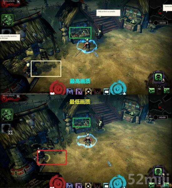 如上图所示,画质主要区别在于有无阴影以及景物的边缘狗牙,实际上游戏整体材质的细腻度变化并不是特别大,而且就算开了狗牙也不是特别明显。加之ARPG这个东西打起来谁会仔细看,再加上还是一款页游。这种画面反而可以算做很优秀