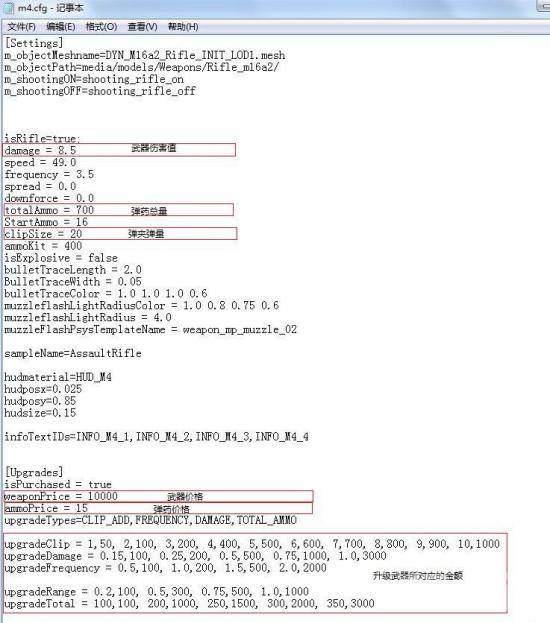 想改什么武器就打开相应的文件,用记事本打开就可以.