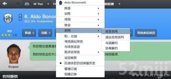 2.点球员名后键的改变合同,注意这个时候经纪人的对话会有所改变