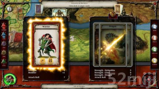 游戏的画面是基于桌面版图的冒险,魔幻的风格会让很多喜欢这类题型的朋友感兴趣。各种卡牌以立体的方式呈现在屏幕前,动画场景也为冒险增加了不少活力和真实感。