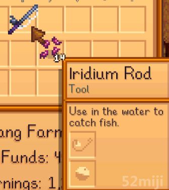 首先你至少要有一根2级的鱼竿Fiberglass Rod(1800g 3级钓鱼)或者3级的鱼竿Iridium Rod(7500g 6级钓鱼)