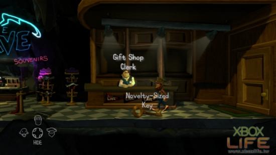 从水潭上岸后往右走会来到洞窟内的礼品店,听完店员的抱怨后,他会给我们一把钥匙并表示: