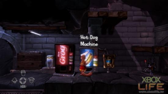 接著我们在热狗贩卖机裡买一条热狗。