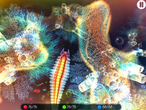 光影穿梭 2:进化是一款画面极其华丽的贪吃蛇类型游戏,游戏的操作为重力感应控制加点击进入不同的地方,游戏中玩家需要吃漂浮着各色的能量来让自己成长起来,有些地方有能力但直接过去吃不到,需要玩家点击区域,画面中的蛇形动物就会穿梭到那个区域。