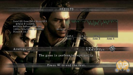 有趣的是,同时放出的游戏截图(见下列图)中显示了内置基准性能测试界面和结果:在Core 2 Quad Q9650 3.0GHz四核心处理器、GeForce GTX 280显卡、1280×720分辨率、DX10.0模式的环境下,平均帧率122.3FPS,其中第一个测试场景达到了169.1FPS,第三个则只有102.6FPS。