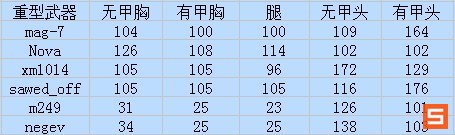 (霰弹枪的伤害测试均为全部子弹打中,几乎是贴身距离)