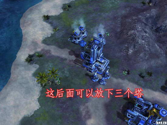 在RA3中,此技巧同样适用,下面是几个比较可行的塔位。
