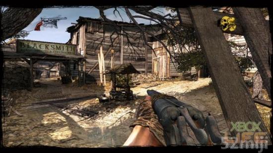 正式进入游戏后,画面给笔者的第一印象就是类似《死亡岛:激流》的粗糙感,不过《狂野西部:枪手》很聪明地运用漫画式的色彩与贴图来掩盖这种粗糙感,反而成功营造出鲜明的西部风格,与《碧血狂杀》这类沉重的西部FPS相比,《狂野西部:枪手》简直超欢乐!在大咖登场时会有漫画特写介绍;Silas边讲故事,还会边被老江湖的听众猛吐槽,令人猜不透Silas到底是真英雄还是只是嘴抱很厉害,不过笔者觉得这正是《狂野西部:枪手》的魅力所在!
