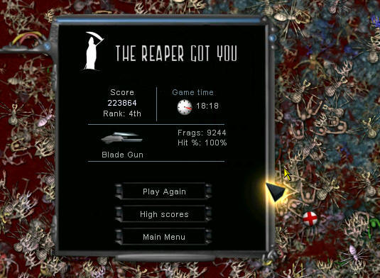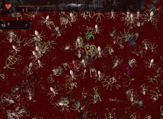 不卖关子了,恐怕不少人都见识过angry reloader + PulseGun的巨大威力了吧~入手那把戏称为吹风机的高射速低威力武器脉冲枪PulseGun,然后升级angry reloader!下面偶们要利用的是PulseGun的一个显著特性:装弹速度极快,0.1s!此时按住装弹键不断重复装弹,angry reloader就不断发威,哈哈哈哈,终极PulseGun生成!一般来说没有什么敌人可以近身,你只要跑位吃PowerUps就可以了。