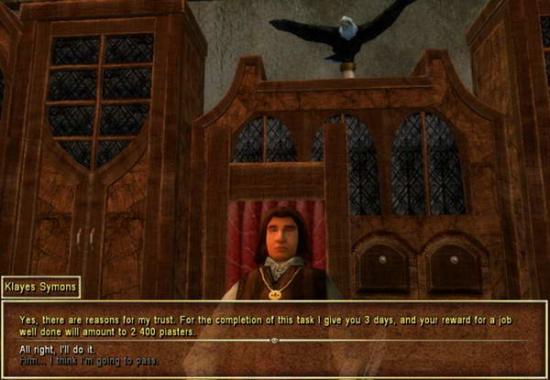 偶屁颠颠的来到 san martin 总督府,询问有什么可以效劳的?总督交办了第三个任务:情报显示有敌间谍潜伏的玛丽哥特城内,需要挖出他来,如果成功可获得奖励2400比索。偶欣然应之。