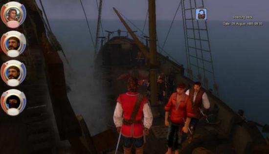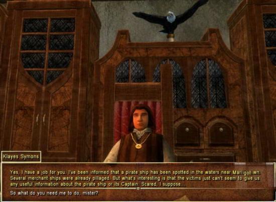 来到港口,对停泊一船一艘一艘地查询,划小船过去和船长们对话,打听劫匪情况。而其一船在偶一靠近时,立刻和偶红脸。显然,这就是伪装的海盗船!最好甲板战,缴获船只和货物还能卖个好价钱!