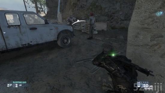 图正中间那绿色的箭头就是系统指示你可以前往下一个掩体的目的地,所以如果掩体很多的话,你可以一路「A」下去,而且一个物体如果四个面都可以躲藏的话,你甚至还可以绕圈圈哦XD
