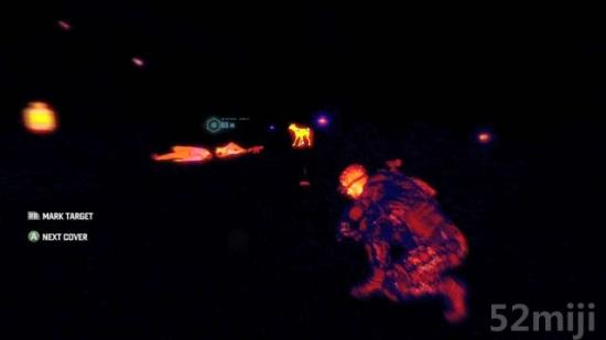 在被敌人发现之前,你可以利用掩体慢慢的一步一步逼近敌人,这次的掩体系统作的很棒,可以「黏」在牆上移动,然后移动视角来检视可掩蔽的物体并且移动,按下确定后就会自动跑位,这边的设定蛮有趣的,因为同样的掩体如果你不是找掩护的状态下,你很可能就会被敌人看到,可是如果你是在找掩护的状态下躲在这掩体后面,基本上敌人就像瞎子一样看不你,除非是正面衝突。