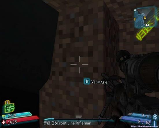 眼熟么。。。没玩过也知道是我的世界。。。 走过去开始凿墙吧 有提示 按V