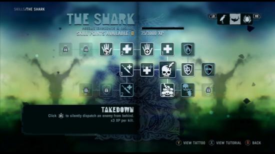 | (解锁条件:猎杀一隻公牛鲨Bull Shark) 按下RS可以直接刺杀重装枪手或火焰喷射兵 刺杀成功可获得5倍的经验值 |