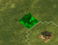 2、果园建设方法。这里注意,看下图,四个果园和仓库的位置关系,生成田地时,双击果园一次全选四个果园房,然后按键盘SHIFT后再点图中所示的按扭一次完成生成。