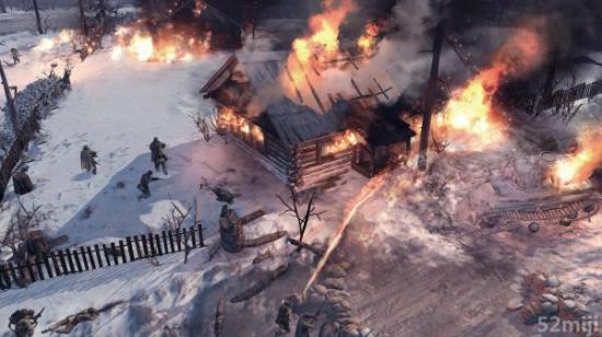我可怜的步兵们还要对付一些车辆单位没有的问题。苏维埃的极寒战场让我的士兵们不得不升先点火把才能开始夺取据点或者修复坦克。厚厚的雪对于步兵来说更是难以行军,单位的移动速度会显著下降,但也很容易建造防御工事来阻止对方步兵靠近。