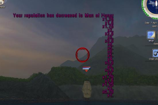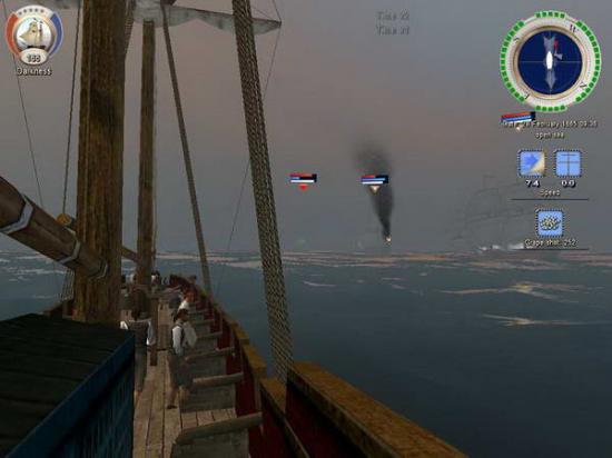 实践证明,站在船中部开侧炮,比站在船头或船尾准星判定更准确。