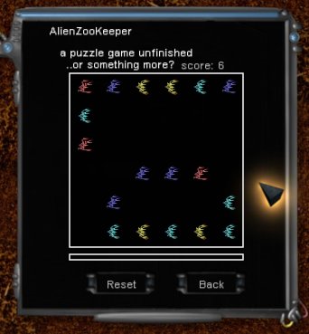 随后进入的是这个造型诡异,名为AlienZooKeeper的游戏,游戏方式类似于幻想3.1中的宝石迷阵Bejeweled(哦嚯嚯嚯,宝石也是偶滴最爱哟~~)