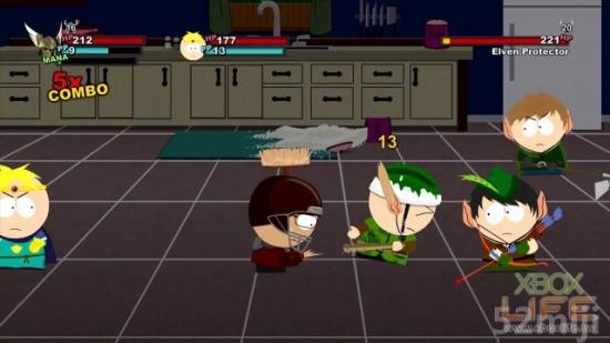 当然如果只是卖角色,我绝对不会给《南方公园:真理之杖》这麽高的评价。本作意外地是一款颇正统的回合制RPG,但製作群把能放的原作梗尽可能塞进战斗系统裡,而且战斗不只是下指令,还要抓准时机按键才能使出完美攻击,而且有时甚至还会有意想不到的状况让你必须用QTE来应对。主角的武器琳琅满目,还能自行搭配武器强化道具,技能则是依照职业而各有巧妙不同,套一句国外实况主持人对本作的感想:「你还能奢求甚麽?」