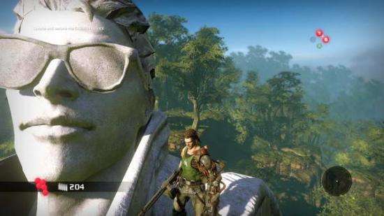 建议大家用机关枪来对付机械蛇,只要它不是在钻地的时候,我们都可以用机关枪来攻击它的头。就算它在发射激光,地面都出现火焰的时候,但如果火都烧到自己的ASS就要先逃命了。BOSS的血没了一半它就会倒下,我们要快点接近BOSS的头,准心对准头部的炮口按鼠标右键(要按住)这时BOSS就会把主角带到半空,在最高点,我们可以松开右键,对好头部的炮口位置连续按“E”,主角就会使出从上而下的爆裂一击。。。