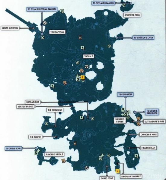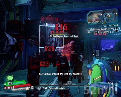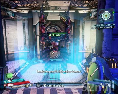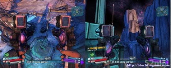 退出后重进,现在我们去Lunar Launching Station(月球发射站)。到达后先在悬赏榜接任务“Things That Go Boom”(会爆炸的东西)(注意!这个任务接后一定得完成后再退出,否则算失败!)以及“Red,Then Dead”(红色,接着就得死!)(特殊!)(注意如果要刷这个任务的装备“The Shooting Star”绞肉盾--类似于2代的爱之巨人的话,最好还是暂时不要接这个任务!)两个任务。先做第一个任务,在场景北区中部激活第一个机器人前可以顺便接“Picking Up The Pieces”这个任务,然后护卫机器人去下载程序的地点刚好就是“Red,Then Dead”(红色,接着就得死!)(特殊!)任务中第一个Courier(信使)所在的地方,顺便搞定他!注意在这期间请不要离开“Things That Go Boom”(会爆炸的东西)任务下载中的机器人太远,否则算任务失败!