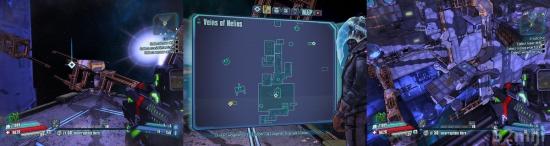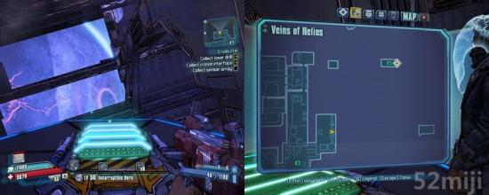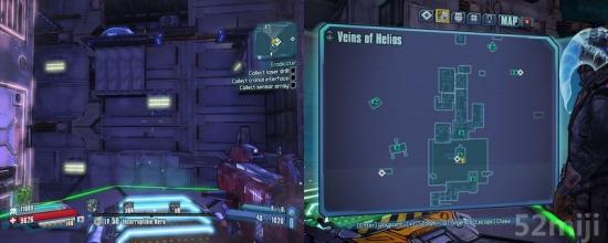 现在我们再次传送去Lunar Launching Station(月球发射站),在东南方的悬赏榜上接“Lock and Load”(瞄准上膛)任务并完成之,然后进入Veins of Helios(赫利俄斯山脉)场景,激活“Don't Get Cocky”(不要搞砸了!)任务并完成之,然后切换成“Eradicate”(灭绝!)(特殊!下图示!)任务。从这个平台起,按照下面几张图的顺序拾获机械部件。