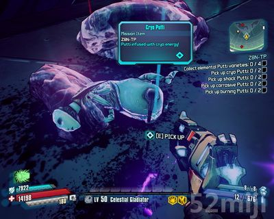 切换到“Z8N-TP”任务并完成之(完成的方法是使用属性武器将能生产图示类似偶人生物的外星人染上DOT,然后近身肉搏V,每种属性收集两个就OK了!)。然后跑回Tycho's Ribs(第谷环形山侧壁)去交任务,搞定后退出重进回到Elseer(远见之境,全视之境)吧,现在剩下的任务已经不多了,在这个场景就剩下“The Bestest Story Ever Told”(准备至少80月亮石以开启)、“Sterwin Forever”(将生产偶人生物的外星人打至残血,然后用任务手雷捕捉!)这两个任务了,没啥好说的,完成它们吧!然后开始新的一周目吧!