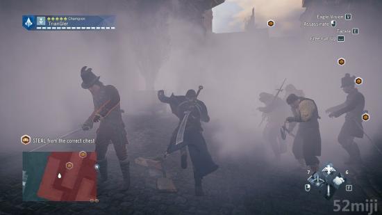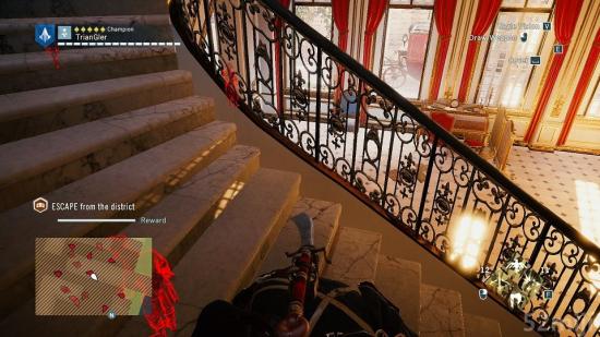 跑路! 第二种情况是窗口开在楼的侧面(以主角的视角),方法也是一样的用berserk射肥仔(这时候一楼的守卫也会出来打),多扔几个烟雾弹冲进一楼。即使被察觉有人追也没关系。冲进楼里面找个转角,自己脚下扔烟雾弹,这时候上来的人一个一个刺杀,基本不损失奖励。之后参考part1
