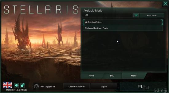 将MOD放到文件夹后工作并没有结束,重新进入游戏。在游戏启动界面在右下角有三个选项,分别为 新闻(News) 扩展下载包(DLC) 游戏模组(Mods),点击第三个。
