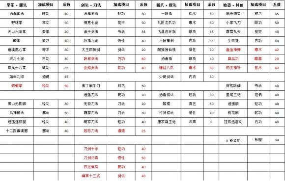 先上各《侠客风云传》所有武功武功套路加成一览表,点击图片看大图