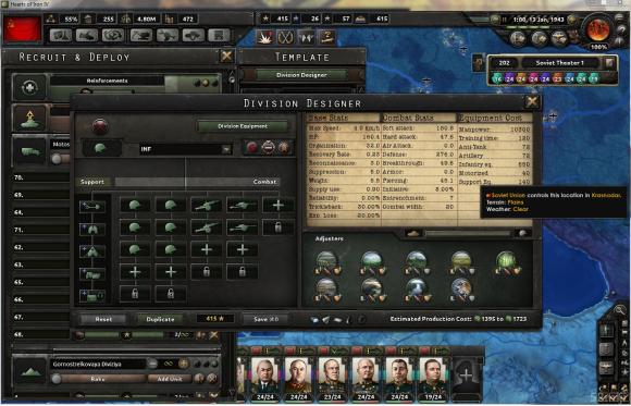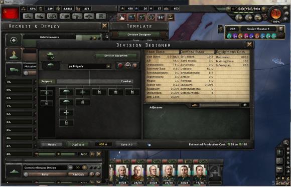 右下角可以看到生产一个这样的师大概需要消耗多少军工厂的产值,最小值78,最大值195。相当于工厂消耗,而每个军工厂的产值各不相同,苏联目前每间军工厂的产出为9.5,相当于这个师只需要消耗20间工厂1天的产值就可以生产出来。