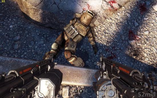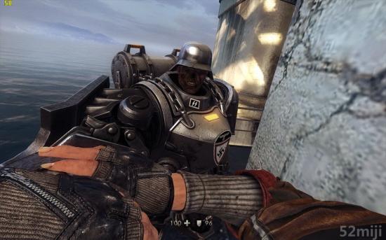 主角在较为空旷的场地上需要对付一个巨型机器人,这个机器人有六个火箭发射仓,眼睛里可以发射冲击波,底下还有机枪和喷火器。主角可以先躲在周围的下水道中,使用激光枪摧毁六个火箭发射仓,打中眼睛时机器人会停顿,无法攻击。下水道中有多个充能点。摧毁火箭以后,可以在机枪和喷火器间歇的短暂时间中,来到正下方击中那里的喷火口,这样机器人就会自爆。抵抗组织的基地被德军攻占,很多人都被俘虏,返回死亡之首的基地营救俘虏,最后死亡之首把他队友的大脑放到了机器人中,需要用手雷瘫痪后迅速取出,死亡之首自己也驾驶着机器人和主角作战,由两个飞艇利用雷电形成护盾,需要用两个角上的防空炮击毁飞艇,然后才能毁掉护盾,最后到地下基地里摧毁死亡之首的机器人,在激战时,柱子上的油管会大量喷火,经过时容易损失生命值,因此需要尽快使用步枪上的火箭击毁死亡之首的机器人,在好几处都有火箭的补给。如果火箭不够用,可以使用激光枪,大厅对面角落里有个充能点,死亡之首的机器人行进比较慢,命中驾驶舱时会有停顿,可以借这个机会多补枪。最后主角的队友救出了俘虏,死亡之首用手雷自爆身亡,主角重伤,让其他人向德军基地发射核弹。