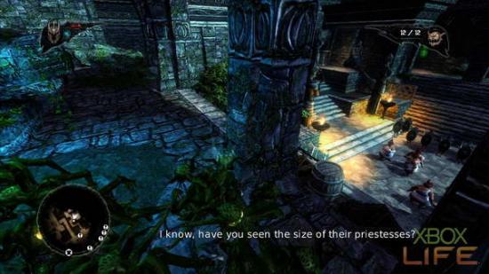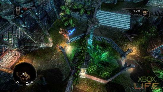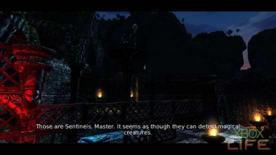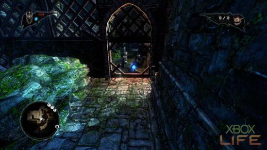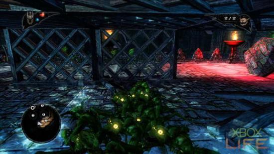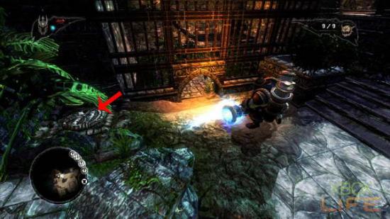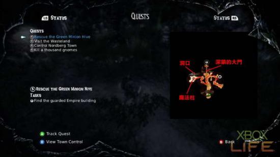 看到绿色小鬼军营的踪影,当然要义不容辞地把它抢回来。顺著小径来到深锁大门的左侧,这裡会有一座能够转变为小鬼的魔法柱,变身成为小鬼后便能穿越一旁的洞口,进入城内。